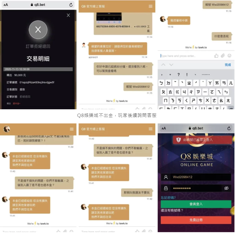 *Q8 Entertainment City đã phát hiện ra cuộc trò chuyện về việc dịch vụ khách hàng không rút tiền. Chuyện xảy ra là một người chơi đã thắng 50.000 nhân dân tệ với 5.000 nhân dân tệ và muốn rút tiền, nhưng bộ phận dịch vụ khách hàng trả lời rằng tiền gốc đã được hoàn lại và vui lòng đến. một thành phố giải trí khác để chơi, khiến người chơi có cảm giác như kẻ thua cuộc, ảo tưởng rằng có tiền là đủ nhưng thắng được tiền thì không.